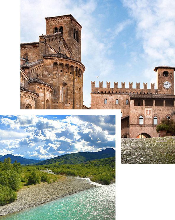I borghi piacentini, immersi nei Colli Piacentini, raccontano secoli di storia tra castelli e fortificazioni. Tre di essi spiccano tra i Borghi più belli d’Italia: Bobbio, con i suoi suggestivi carruggi e il Ponte Gobbo; Vigoleno, con le sue mura e la piazza medievale; Castell’Arquato, con la maestosa rocca e i vicoli in pietra. Luoghi perfetti per un viaggio nel tempo.